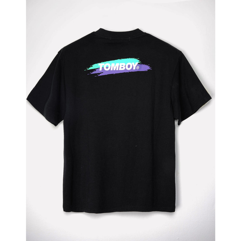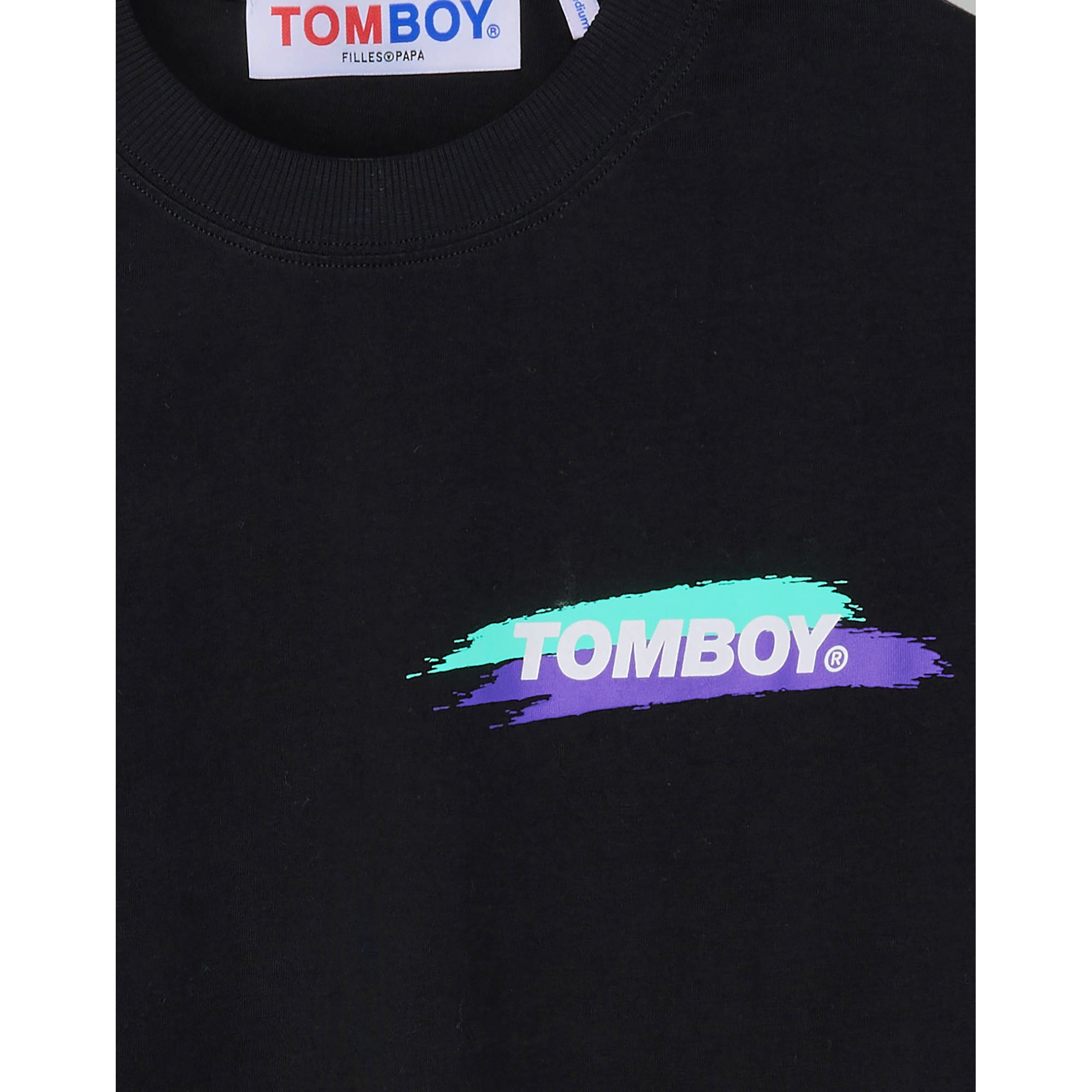 - COULEUR : JERSEY NOIR AVEC IMPRIMÉ BLANC, MAUVE & MENTHE