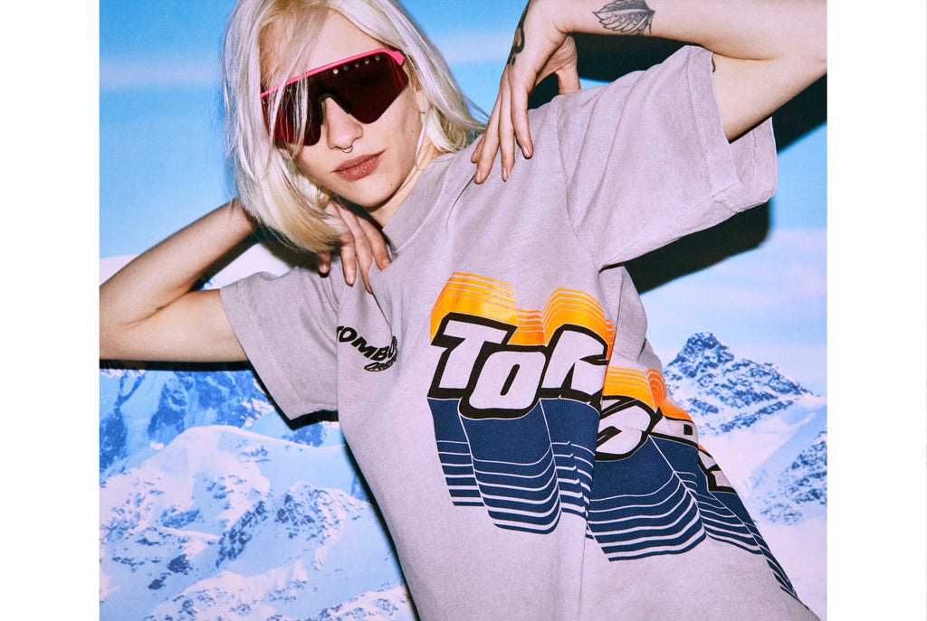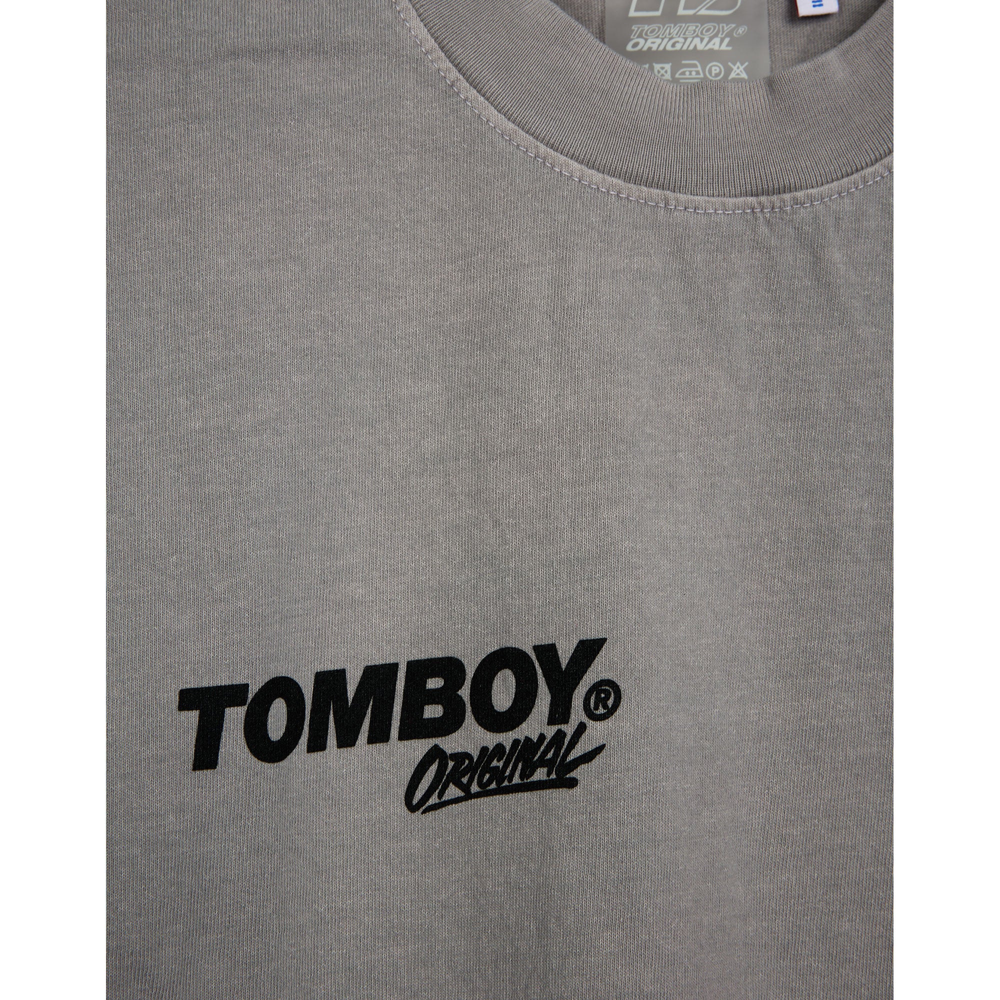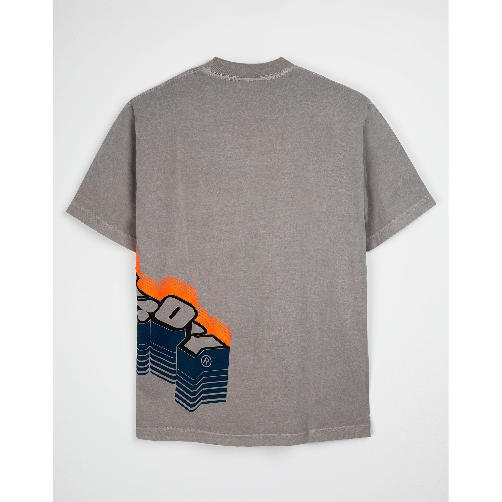 - COULEURS : JERSEY GRIS TIE & DYE AVEC IMPRIMÉ NOIR, BLEU MARINE & ORANGE FLUO